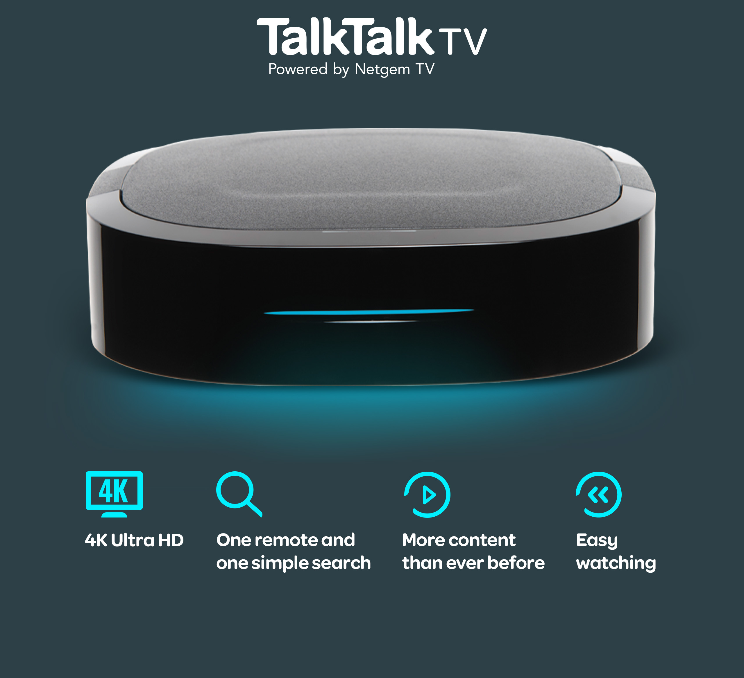 Features pause and rewind (for up to 30 minutes), access to over 80 Freeview channels with 15 in HD and 7 day catch up. 7 day catch up available for certain channels only and not all programmes available on channels where catch up is available. TalkTalk TV provides access to on demand content and certain subscription services (separate subscriptions may be applicable directly with the service provider). Available platforms include; Netflix, NOW, Amazon Prime Video, Britbox, BBC Sounds, UKTV Play, STV, ITV Hub, BBC iPlayer, All 4, My5, S4C, Milkshake and Pop Player. These are accurate as of 13/07/2021 but subject to change. Minimum connection speed of 7Mb/s required. Please visit the Freeview coverage checker for expected channel availability.